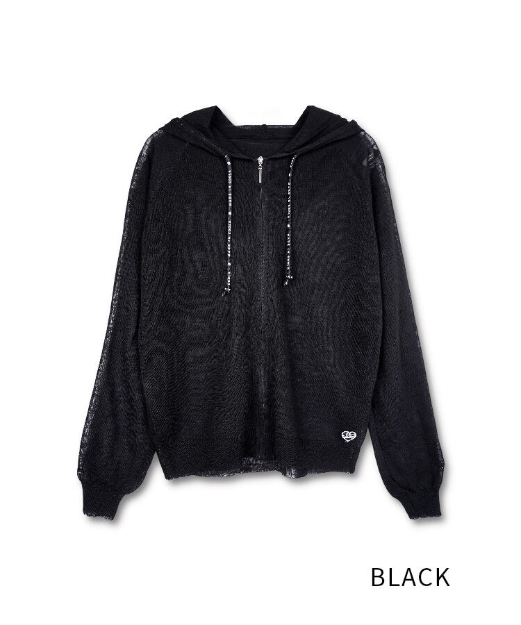サマーニットジップフードカーディガン (BLACK) CQ-48147H