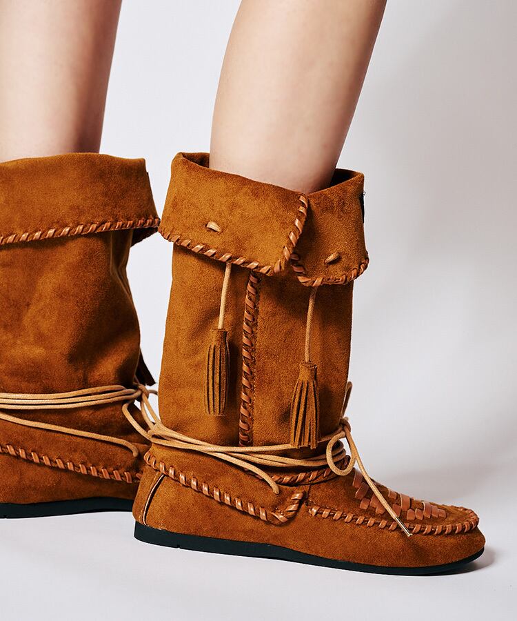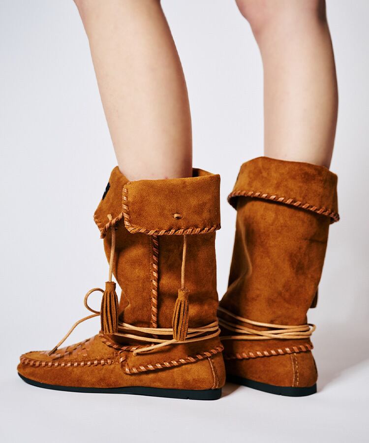 トレンドのモカシンブーツ。