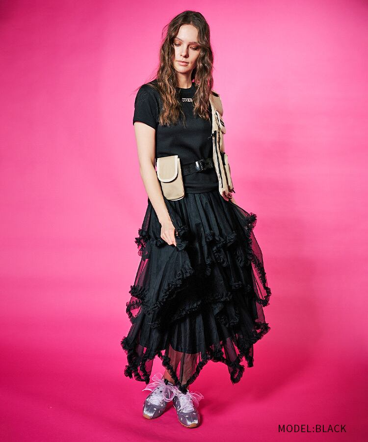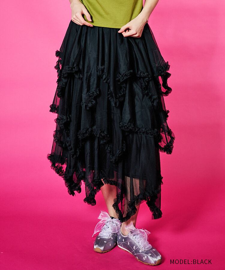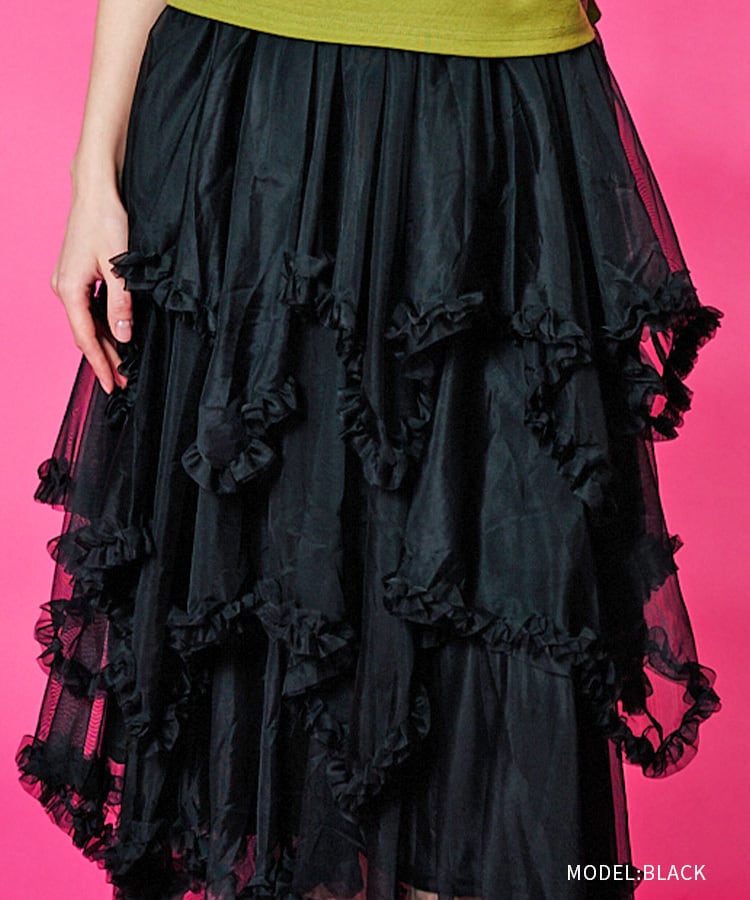 シフォンイレギュラーヘムフリルスカート (BLACK) CQ-48128