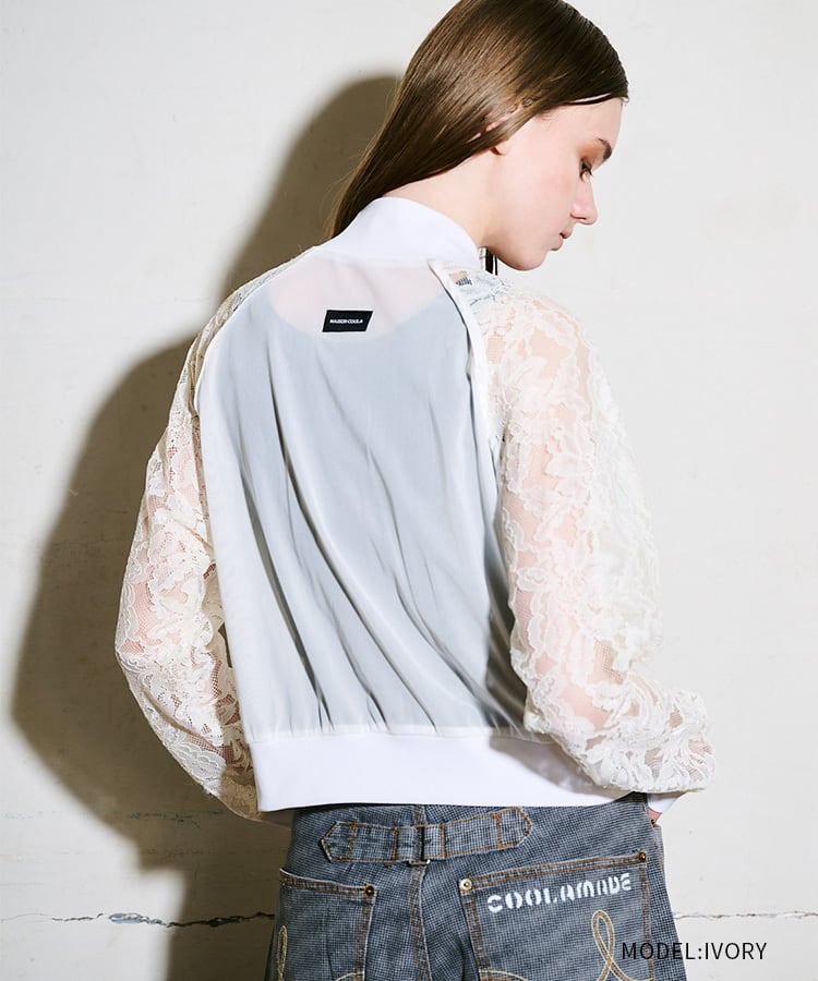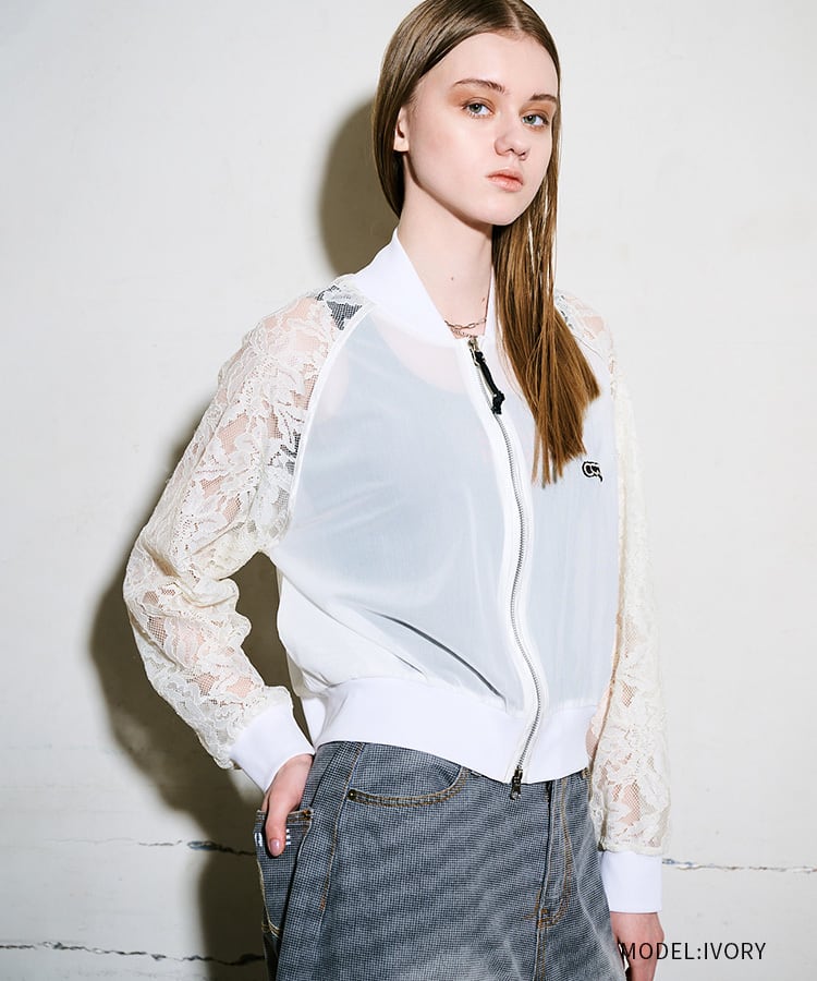 レーススリーブメッシュブルゾン (IVORY) CQ-48114