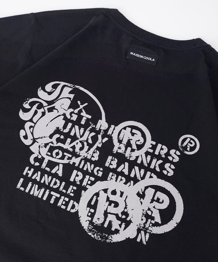 前後共に施された大胆なロゴプリントが
