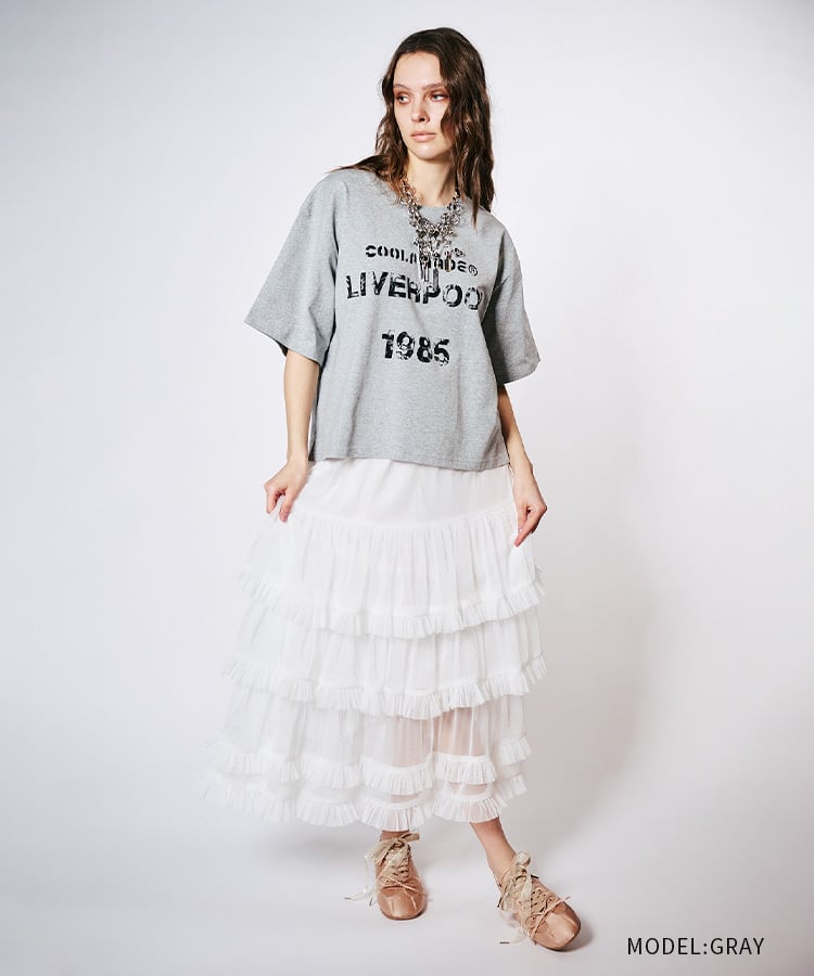 COOLAヴィンテージプリントクロップドTシャツ (GRAY) CQ-48137
