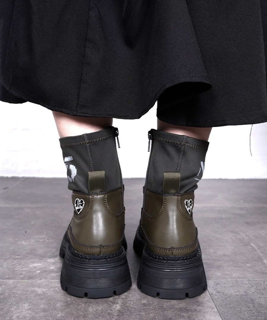 【バイカラーデザインが遊び心のあるショートブーツ】